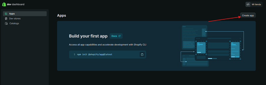 Luego, ingresar a esta url https://dev.shopify.com/dashboard/ en otra pestaña en el mismo navegador y se mostrara la siguiente ventana.