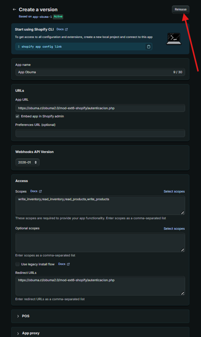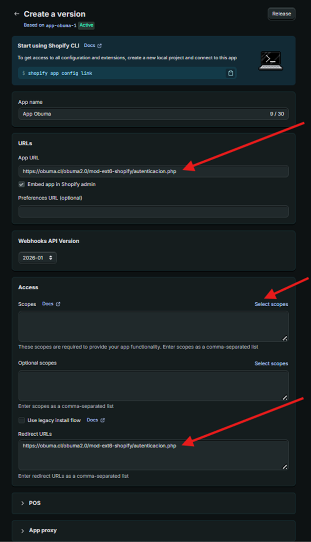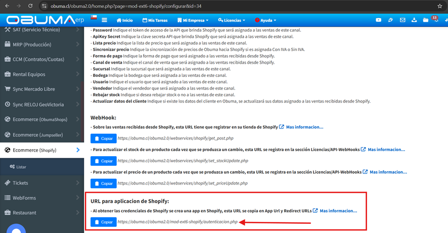 Para este caso copiamos https://obuma.cl/obuma2.0/mod-ext6-shopify/autenticacion.php