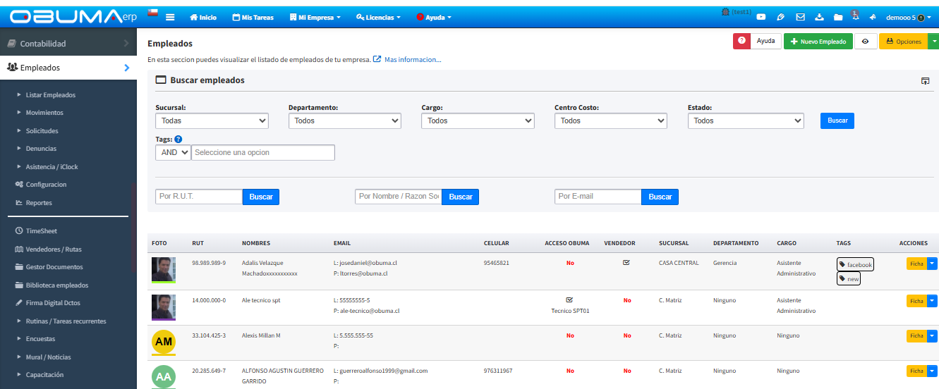 Tenga en cuenta que un empleado en "Listar empleados", es un colaborador interno o externo que puede o no tener acceso a OBUMA.